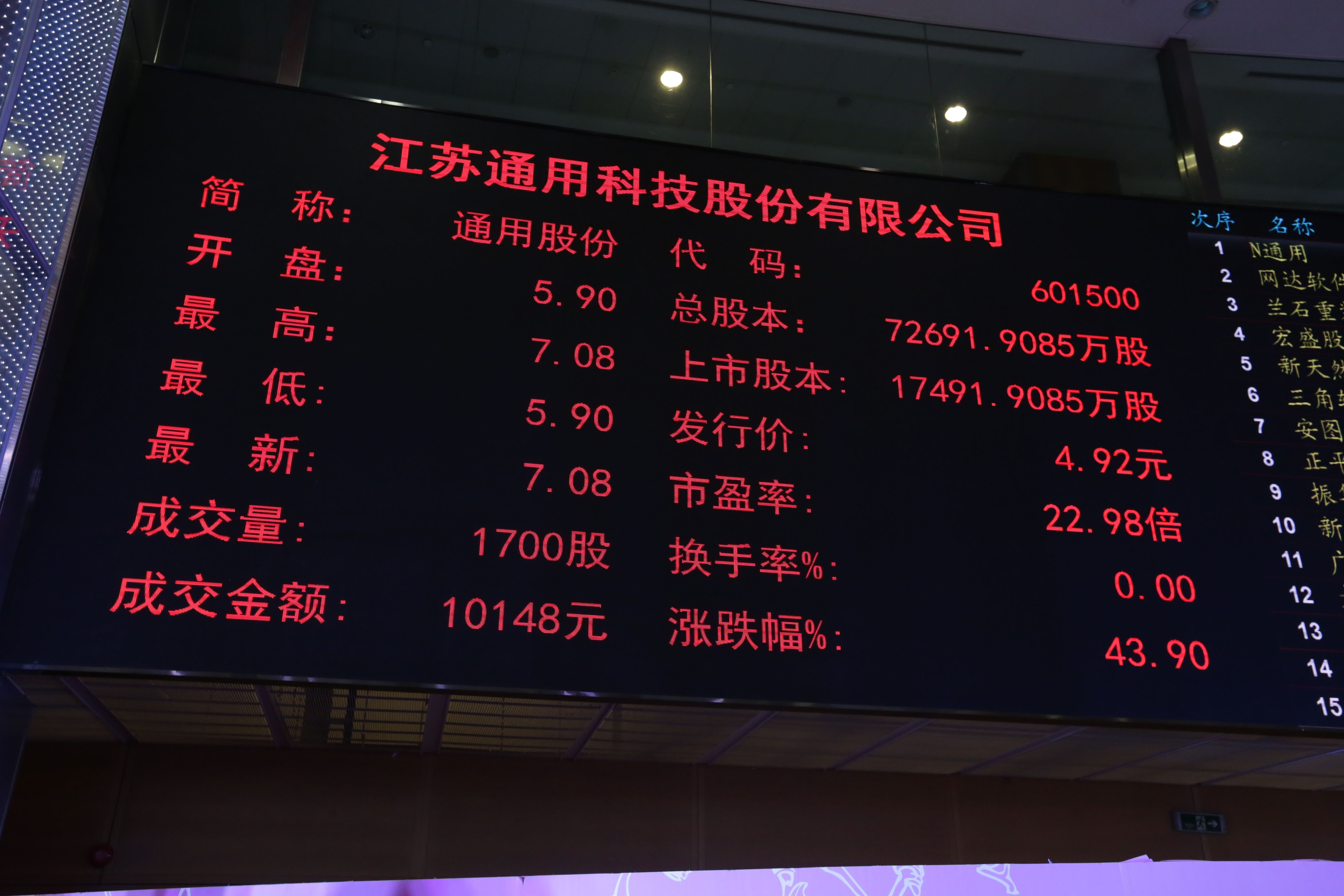 919日,江蘇通用科技股份有限公司首次公開發(fā)行A股上市儀式在上海證券交易所隆重舉行,隨著開市鳴鑼,標(biāo)志著通用股份(股票代碼:601500)正式在上交所上市,成功跨入資本市場(chǎng),邁進(jìn)一個(gè)嶄新的發(fā)展階段。
