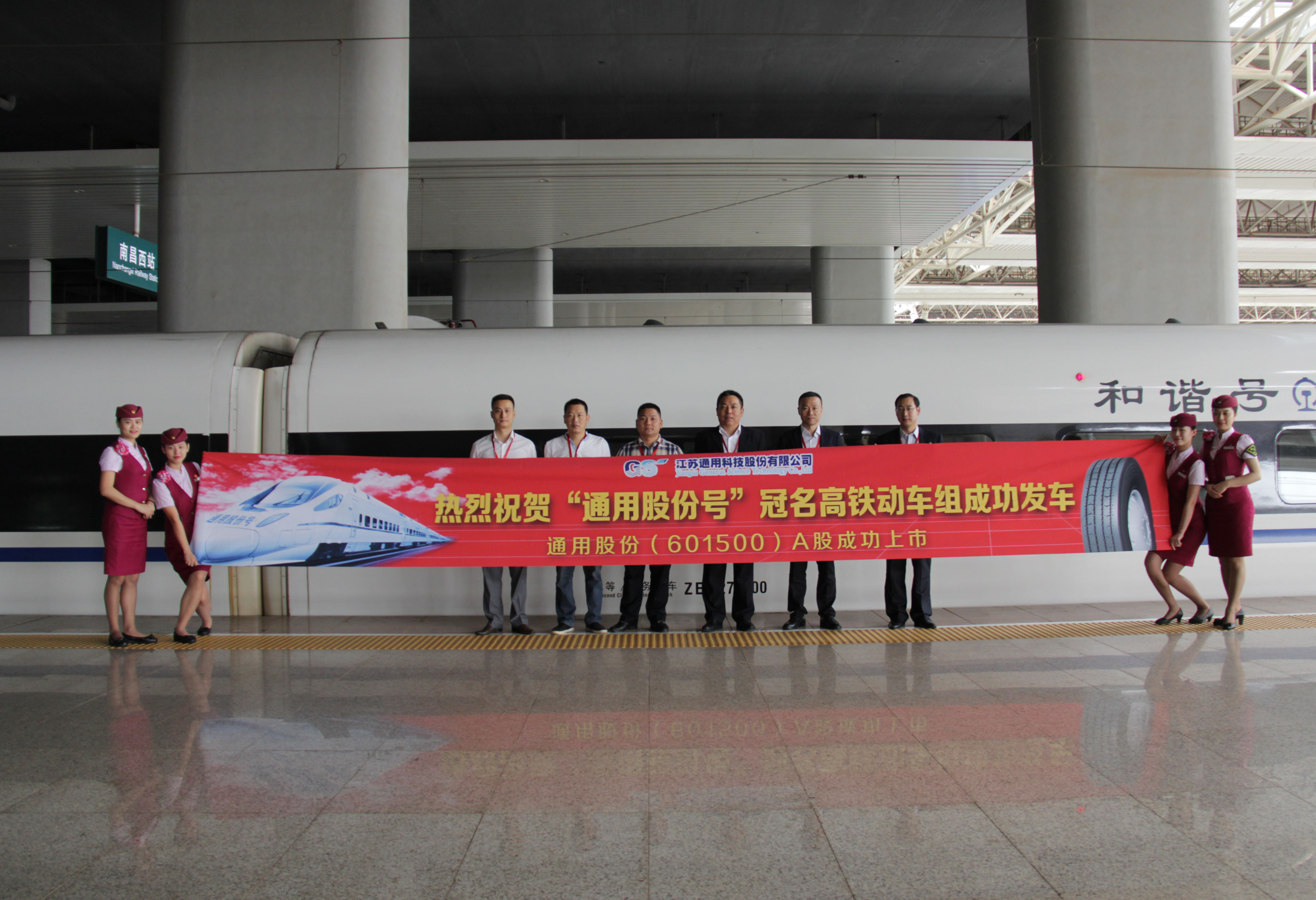 9月19日,江蘇通用科技股份有限公司在上交所鳴鑼上市(以下簡(jiǎn)稱通用股份,股票代碼601500),標(biāo)志著通用股份在資本市場(chǎng)的騰飛跨越。9月20日,一列滿載著喜悅與希望的“通用股份號(hào)”品牌專列高鐵G489從南昌西發(fā)車(chē),跨越江西、湖南、湖北、河南、河北各省,貫穿大江南北,駛往首都北京。此次“通用股份號(hào)”發(fā)車(chē)是通用股份借力高鐵、乘勢(shì)而上的又一大品牌建設(shè)舉措,利用高鐵全冠名的媒體組合形式,全力打造國(guó)人了解通用股份的新窗口。