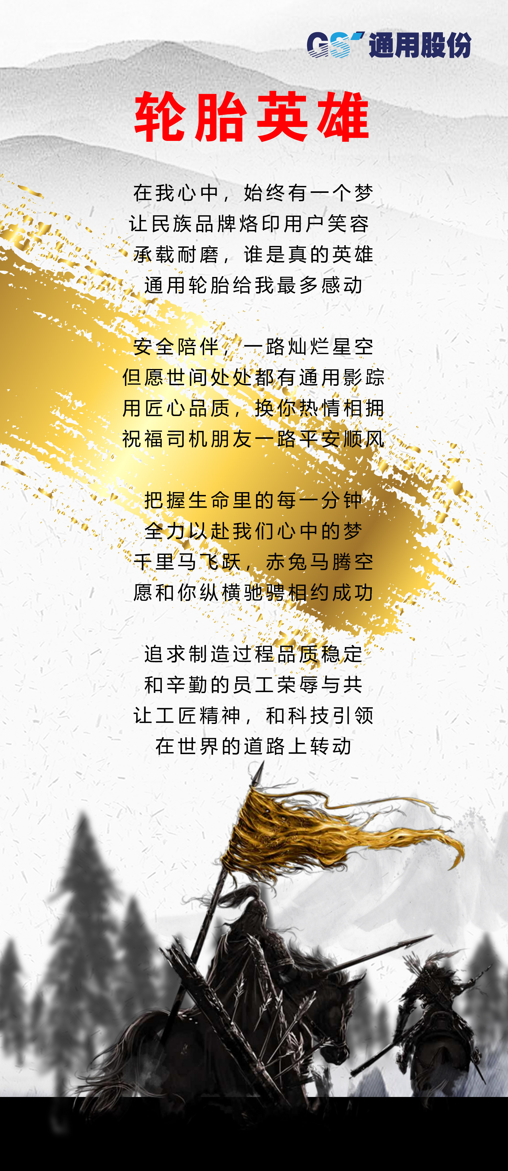 今年9月是中國第四十一個(gè)“質(zhì)量月”,也是通用股份第十四屆“科技質(zhì)量月”。滄海橫流,自強(qiáng)不息,方顯英雄本色。今年,通用股份以一首創(chuàng)編的《輪胎英雄》拉開了“科技質(zhì)量月”的帷幕,在這個(gè)風(fēng)起云涌的競爭時(shí)代,全體通用人堅(jiān)守初心,以振興民族品牌為己任,為向廣大消費(fèi)者提供更加卓越的產(chǎn)品與服務(wù)而不斷努力奮斗,推動(dòng)企業(yè)邁向高質(zhì)量發(fā)展。