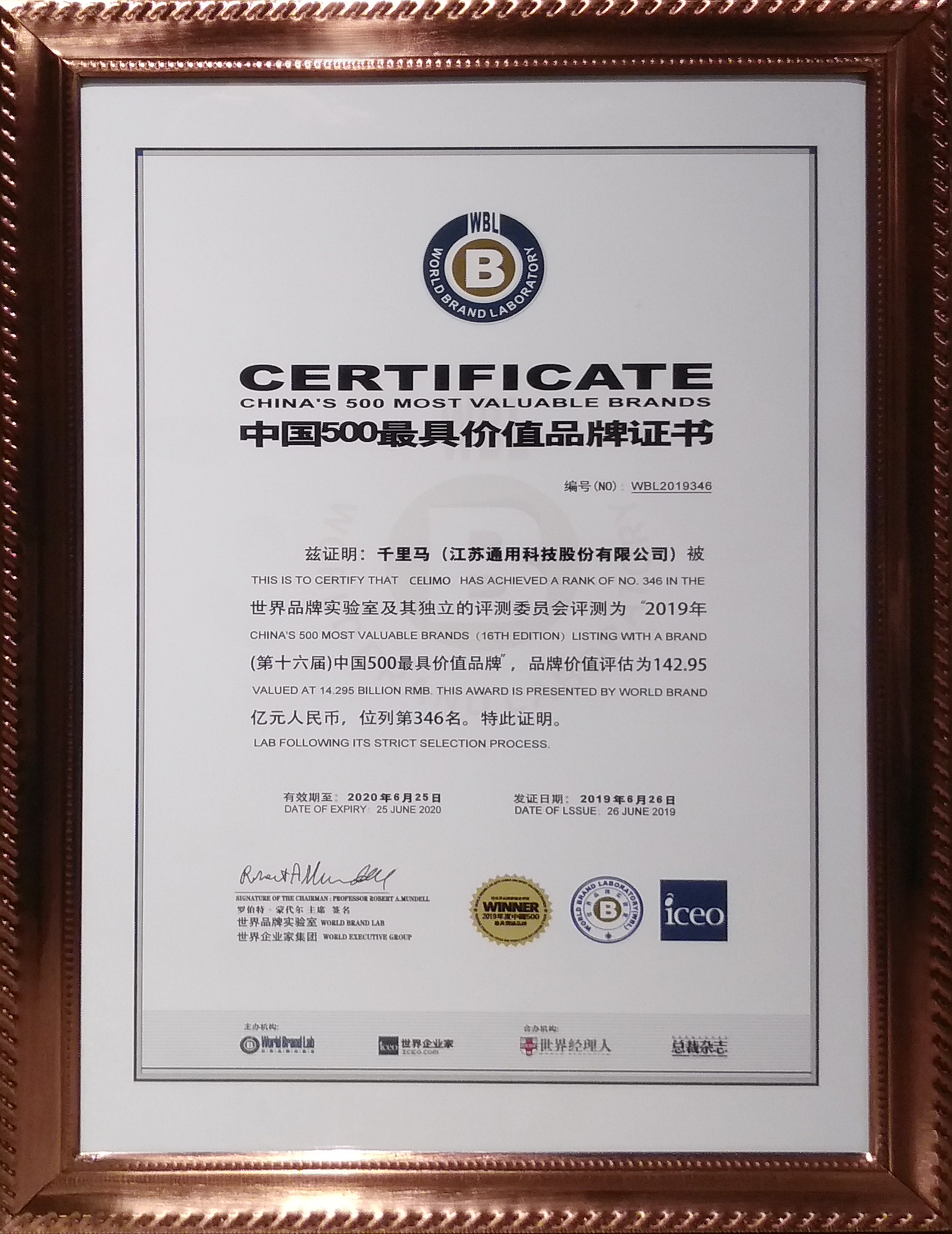 6月26日,由世界品牌實(shí)驗(yàn)室主辦的第十六屆“世界品牌大會(huì)”在北京舉行,會(huì)上發(fā)布了2019年《中國500最具價(jià)值品牌》分析報(bào)告,其中通用股份旗下品牌——千里馬輪胎以142.95億元的品牌價(jià)值榮列本年度中國最具價(jià)值品牌榜346位。
