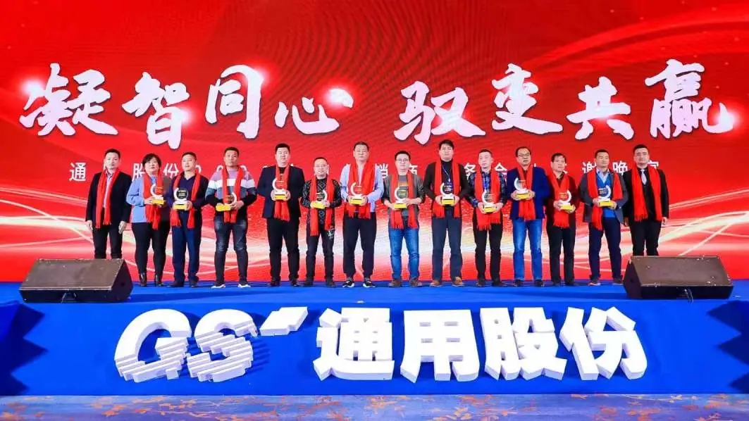 唯創(chuàng)新者強,唯進化者勝。本次會議隆重表彰了為通用股份發(fā)展貢獻力量的經(jīng)銷商合作伙伴,晚宴現(xiàn)場頒發(fā)了2020年度潛力經(jīng)銷商獎、先進經(jīng)銷商獎、優(yōu)秀經(jīng)銷商獎、杰出經(jīng)銷商獎等獎項。他們以高昂的斗志馳騁跨越,在商海的競爭中勇立潮頭,乘風破浪,他們是通用股份親密無間的合作伙伴,一座座獎杯記錄了他們的榮譽和付出,會議現(xiàn)場氣氛不斷推向高潮!
