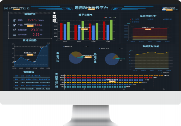 “十四五”是碳達峰的關鍵期、窗口期,通過數(shù)字化建設,可在節(jié)能、降耗、減排、污染監(jiān)管等領域利用數(shù)字化、智能化技術實現(xiàn)行業(yè)數(shù)字化轉型,從而實現(xiàn)數(shù)據(jù)采集到數(shù)據(jù)應用的全生命周期管理,加強行業(yè)大數(shù)據(jù)整合共享和應用能力。可以說企業(yè)的數(shù)字化轉型升級,就是在為低碳化戰(zhàn)略賦能。碳中和是數(shù)字化轉型的核心力,數(shù)字化是低碳化戰(zhàn)略驅動力。據(jù)了解,通用股份碳云平臺通過工業(yè)互聯(lián)等技術,將全面采集、評估分析工廠使用的電力、蒸汽、燃氣、水務等各類數(shù)據(jù),利用碳監(jiān)測算法生成能源碳排熱力圖,指導車間、設備、班組持續(xù)開展節(jié)能工作,從而節(jié)約資源和減少能源消耗,實現(xiàn)“一屏觀全局”,即使通過手機app也可實時便捷掌控。
