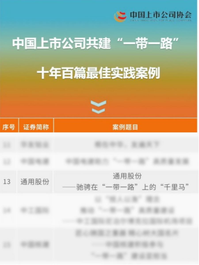 近日,中國上市公司協(xié)會發(fā)布《中國上市公司共建“一帶一路”十年百篇最佳實踐案例》,紅豆集團控股子公司通用股份(601500.SH)的實踐案例《馳騁在“一帶一路”上的千里馬》實力“出圈”成功入選。