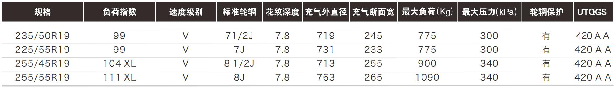 四條縱向溝槽及眾多細小溝槽相互組合,提高排水效率,降低胎面浮水效應,雨天讓胎面與濕滑路面更緊密的接觸。