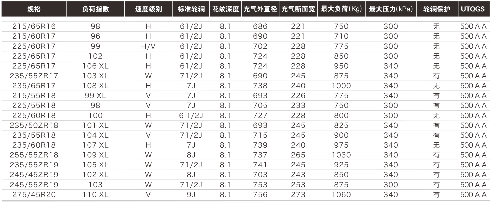 胎面非對(duì)稱的花紋,針對(duì)城市SUV的特點(diǎn),提供優(yōu)異的干濕地性能。