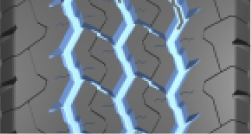 三條寬闊的曲折排水溝槽,有效防止輪胎側(cè)向打滑;S型花紋設(shè)計,提高輪胎制動剎車性能。