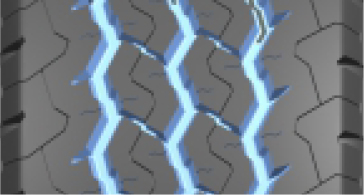 三條寬闊的曲折排水溝槽,有效防止輪胎側(cè)向打滑;S型花紋設(shè)計(jì),提高輪胎制動(dòng)剎車(chē)性能。