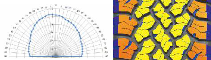 通過(guò)計(jì)算機(jī)仿真優(yōu)化,優(yōu)化各花絞塊的強(qiáng)度,各花紋塊堅(jiān)實(shí)有力,可以應(yīng)對(duì)各種嚴(yán)苛環(huán)境,保證輪胎的牽引能力;