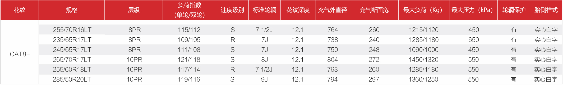 GUANYU A/T CAT8擁有曲折花紋溝設(shè)計(jì),適應(yīng)各種惡劣路況。連貫的橫向傾斜溝槽在濕地路面有效排除積水,提供持續(xù)穩(wěn)定的抓地能力。全新耐磨配方,適合比較苛刻的路面,保證了輪胎壽命。